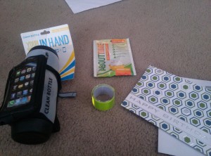 It arrived this past week and I finally opened it up. It happened to be the Emily Bridgers box with lots of cool stuff. From FitAid was a hat, shirt, can of LifeAid, and socks! It also included some Roasted Broad Bean Crisps from Enlightened and some wristbands from Victory Grips. Plus some kind of discount code or coupon for all the companies mentioned.